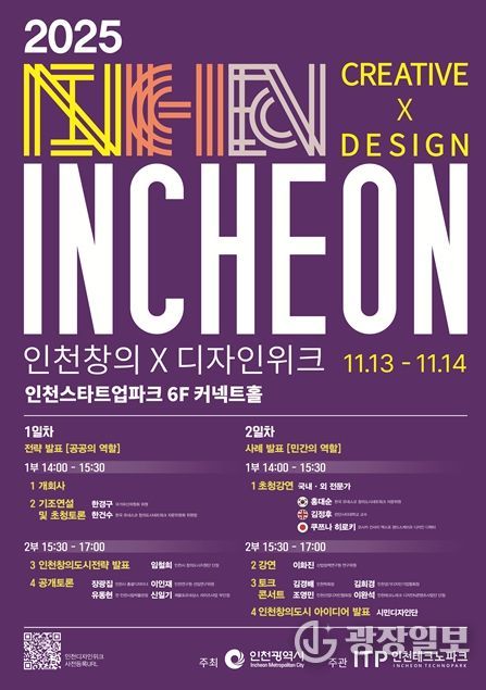 광장일보 주재영 기자 | 인천광역시는 오는 11월 13일부터 14일까지 이틀간 인천스타트업파크 커넥트홀에서 '2025 인천창의X디자인위크'를 개최한다고 밝혔다.