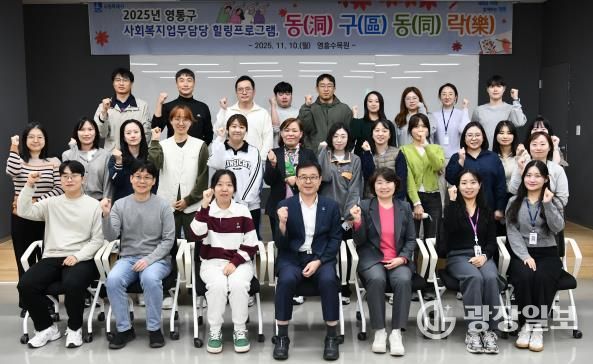 광장일보 나학천 기자 | `25년 11월 10일, 영통구는 영흥수목원에서 사회복지담당 공무원 힐링 프로그램, ‘동(洞)구(區)동(同)락(樂)’을 진행했다. 이 프로그램은 과중한 업무로 인한 정서적 피로와 스트레스를 해소하고 직원들의 심신 회복을 지원하기 위해 마련됐으며, 구/동 직원 30명이 참여했다.
