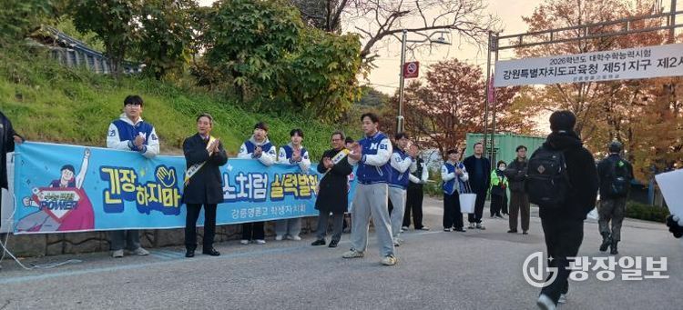 광장일보 이현나 기자 | 강릉교육지원청은 11월 13일 2026학년도 대학수학능력시험을 맞아 김홍규 강릉시장, 심오섭·김용래 강원특별자치도의원, 강릉교육지원청 부서장들과 함께 지역 내 시험장을 찾아 수험생을 응원했다.