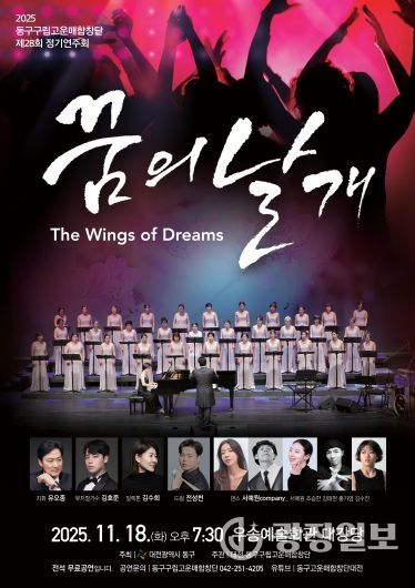박희조 동구청장은 “이번 연주회는 음악으로 하나 되는 따뜻한 화합의 장이 될 것”이라며 “많은 구민께서 함께해 합창이 전하는 감동과 희망의 메시지를 느껴보시길 바란다”고 말했다.