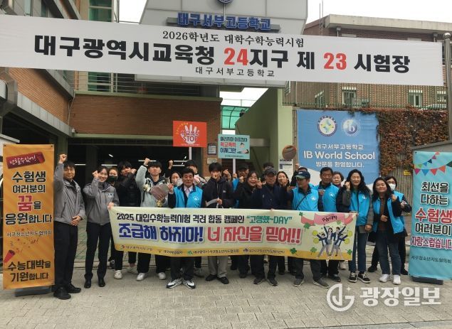 광장일보 주재영 기자 | 대구 서구 청소년지도협의회(회장 황만태)는 지난 12일, 서부고등학교 정문에서 학생들의 수능 예비 소집일 시간에 맞춰 수험생 응원 및 선도·보호 합동 캠페인을 실시했다.