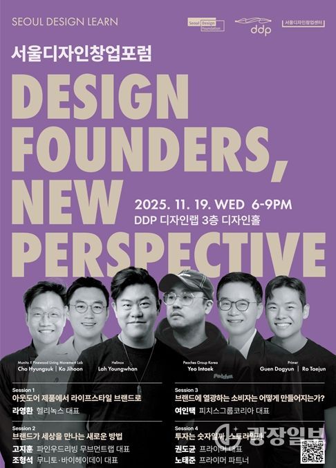 광장일보 주리아 기자 | 서울디자인재단은 11월 19일 오후 6시, DDP 디자인랩 3층 디자인홀에서 '2025 서울디자인창업포럼(Seoul Design Startup Forum 2025)'을 개최한다. 이번 행사는 국내 유일의 디자인 창업 전문 포럼으로, ‘디자인이 창업의 미래를 바라보는 관점, 감각이 전략이 되는 순간’을 주제로 디자인 창업가들이 자신만의 시선으로 시장을 읽고, 감각을 전략으로 전환하여 브랜드를 성장시켜온 실제 사례를 공유한다.