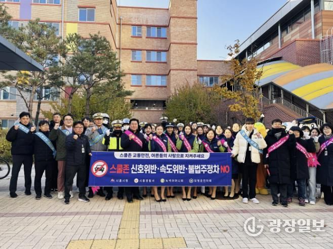 광장일보 이현나 기자 | 시흥시는 지난 11월 18일 오전 은빛초등학교 앞에서 초등학생들의 안전한 등굣길을 조성하기 위해 ‘어린이 교통안전 캠페인’을 진행했다.