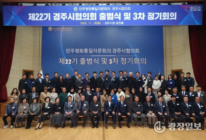 광장일보 주재영 기자 | 경주시는 지난 18일 오후 4시 시청 알천홀에서 민주평화통일자문회의 경주시협의회(협의회장 장동호)의 ‘제22기 출범식 및 2025년 3차 정기회의’가 송호준 경주시 부시장, 자문위원 등 70여 명이 참석한 가운데 개최됐다고 밝혔다.