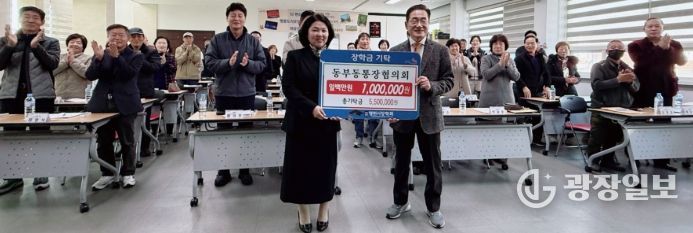 11월 통장회의에서 100만원의 장학금을 기탁한 고우일 회장은 “보다 많은 학생들이 다양한 장학 혜택을 받았으면 하는 마음으로 통장님들과 뜻을 모아 기탁하게 됐다”며 소감을 전했다.