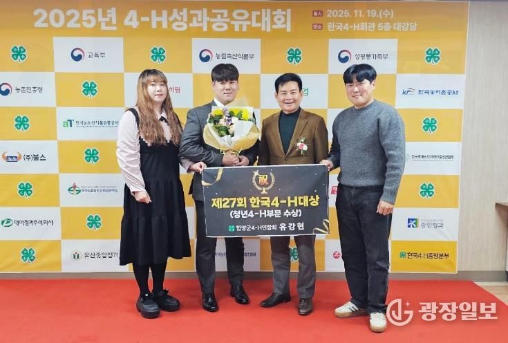 광장일보 주재영 기자 | 함양군 4-H연합회 전 회장이자 지역 청년 농업인의 모범으로 활동해 온 유강현 씨가 19일 한국4-H회관에서 열린 제26회 한국4-H대상 시상식에서 ‘한국4-H대상 청년부문 특별상’을 수상했다.