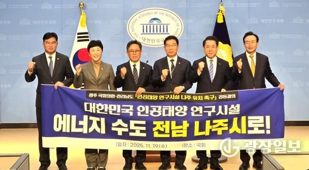 광주·전남 국회의원들은 이날 공동결의문에서 “나주는 안정적 부지 여건, 우수한 정주환경, 한국전력·한국에너지공대 등 세계적 에너지 인프라가 집적된 인공태양 연구시설의 최적지”라고 강조했다.