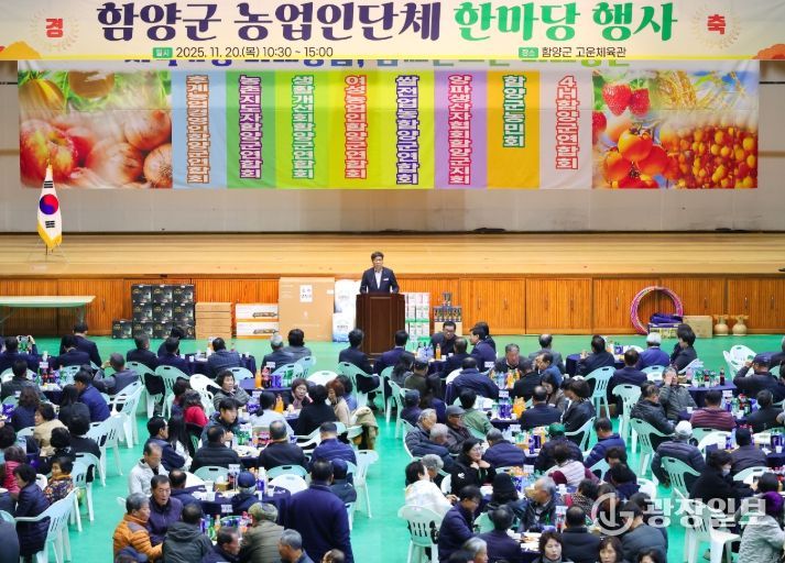 광장일보 주재영 기자 | 함양군은 11월 20일 고운체육관에서 ‘2025년 함양군 농업인단체 한마당 행사’를 성황리에 개최했다고 밝혔다.