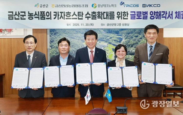 군 관계자는 “이번 협약을 통해 금산군 농식품이 카자흐스탄 시장을 넘어 중앙아시아 전역으로 확장할 수 있는 가능성을 보여줬다”며 “금산군 농식품이 글로벌 시장에서 경쟁력을 갖출 수 있도록 노력하겠다”고 말했다.