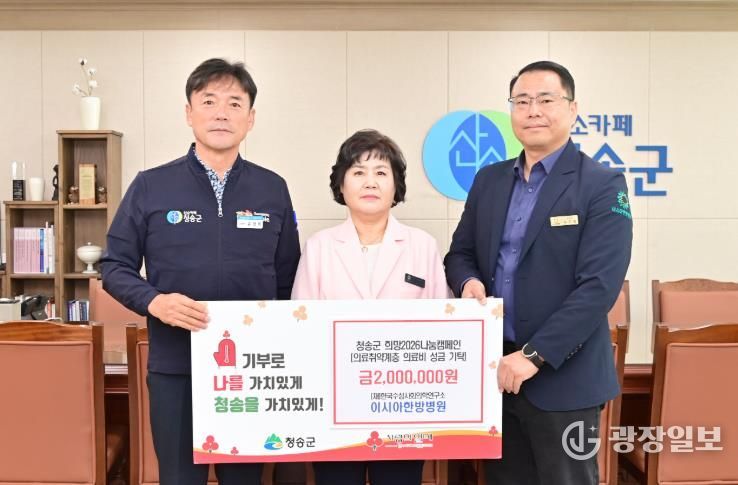 광장일보 주재영 기자 | 청송군은 지난 21일 (재)한국수성사회의학연구소 이시아한방병원이 청송군을 방문해 관내 의료 취약계층을 위한 성금 200만 원을 기탁했다고 밝혔다.