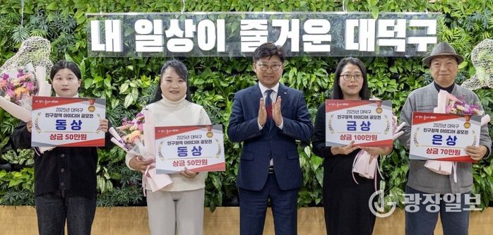 대덕구는 창의성, 효과성, 실현 가능성 등을 종합적으로 심사해 금상 1명(100만원), 은상 1명(70만원), 동상 2명(각 50만원), 장려상 1명(30만원) 등 총 5건을 최종 선정했다.