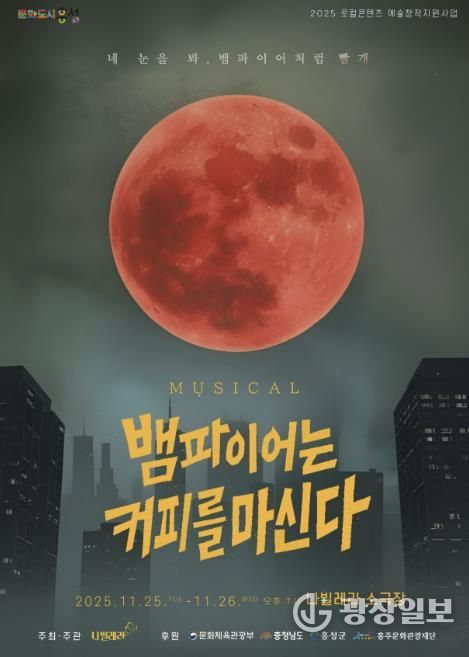 ‘뱀파이어는 커피를 마신다’는 뮤지컬 ‘나의 첫사랑 레시피’의 후속작으로 기획됐으며, 장기공연을 목표로 한 첫 단계로서 쇼케이스 형태로 선보일 예정이다. 새로운 로컬 콘텐츠의 탄생을 예고하며 지역 공연계의 기대를 모으고 있다.