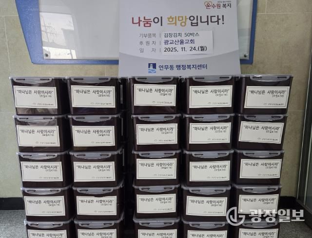 광교산울교회는 매년 꾸준한 나눔 활동을 이어오며 지역사회 돌봄에 앞장서고 있으며, 이번에 기부받은 김장김치는 관내 독거노인, 저소득 가구 등 취약계층에게 순차적으로 배부할 예정이다.