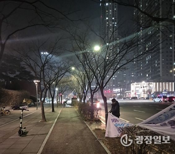 광장일보 주재영 기자 | 연수구는 지난 25일 주민 불편을 줄이고 쾌적한 환경을 조성하기 위해 실제 집회가 열리지 않는 기간에 설치된, 이른바 ‘집회 없는 현수막’을 야간 현장점검을 통해 일제 정비했다.