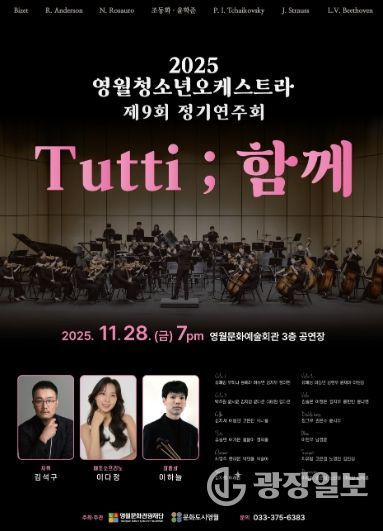광장일보 이현나 기자 | (재)영월문화관광재단은 오는 11월 28일 오후 7시, 영월문화예술회관 3층에서 ‘2025 영월청소년오케스트라 제9회 정기연주회 'Tutti : 함께'’를 개최한다고 밝혔다.