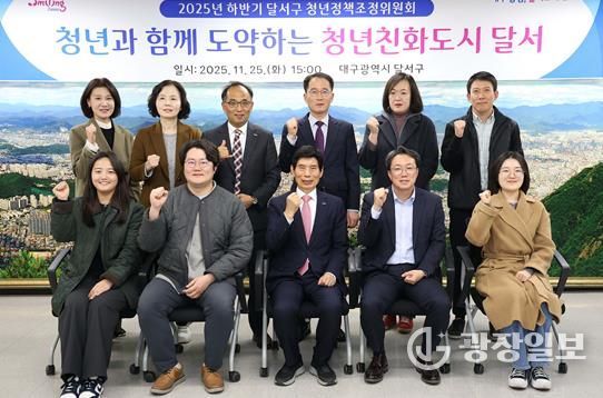 광장일보 주재영 기자 | 대구 달서구는 지난 25일 구청에서 ‘2025년 하반기 달서구 청년정책조정위원회’ 정기회의를 개최하고 2025년 청년정책 추진성과와 2026년 신규 청년지원사업 방향에 대해 자문을 받았다.