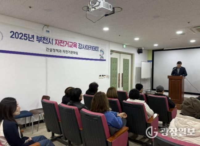 광장일보 주재영 기자 | 부천시는 지난 26일 자전거문화센터에서 자전거 안전문화 정착과 생활 속 자전거 이용 활성화를 위해 ‘자전거 교육 강사 아카데미’를 운영했다. 이날 행사는 자전거 교육 강사 양성과 안전 문화 확산을 목표로 추진됐다.