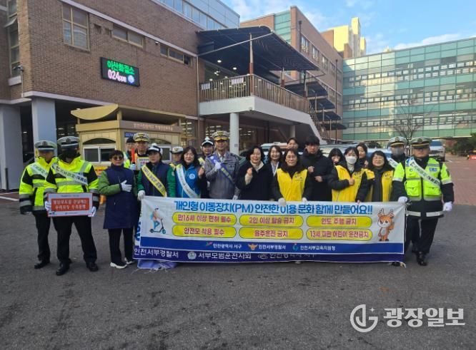 광장일보 주재영 기자 | 인천 서구는 청소년들의 무분별한 공유 킥보드 이용이 증가함에 따라 서부경찰서, 서부교육지원청, 가현중학교, 서부모범운전자회, 서부녹색어머니연합회 관계자와 기관합동으로 등굣길 교통안전 캠페인을 실시했다고 밝혔다.