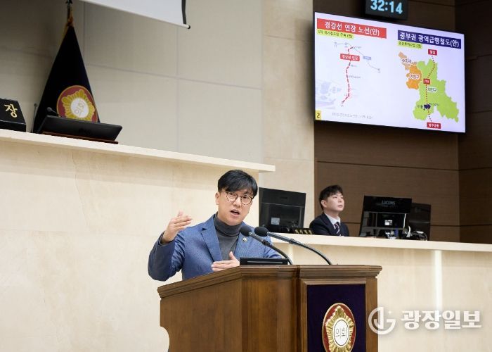 광장일보 주재영 기자 | 용인특례시의회 김병민 의원(구성동,마북동,동백1동,동백2동/더불어민주당)은 26일 열린 제297회 제2차 정례회 제3차 본회의 시정질문을 통해 용인시 철도 정책의 일관성 부재, 마북연구단지-단국대 연계 '신산업 혁신밸리' 조성, 미래 신성장 전략 부재 문제 등을 집중 지적하며 시의 명확한 정책 방향 제시를 촉구했다.