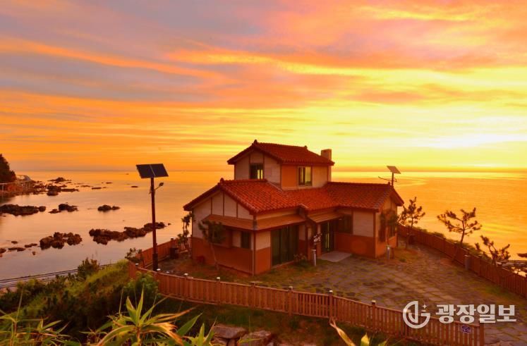 바다와 붉은 지붕 그리고 해를 품은 빛이 함께 어우러지며 한 폭의 그림 같은 죽변의 아침이다.
