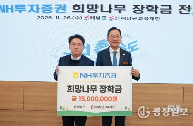 명현관 군수는“NH투자증권의 지역 인재 양성을 위한 관심과 지원에 진심으로 감사드린다”며“이번에 전달받은 장학금을 통해 어려운 환경 속에서도 학업에 정진하는 우리 해남군 학생들에게 큰 힘이 되고, 미래를 향한 희망의 씨앗이 될 것이다”고 전했다.