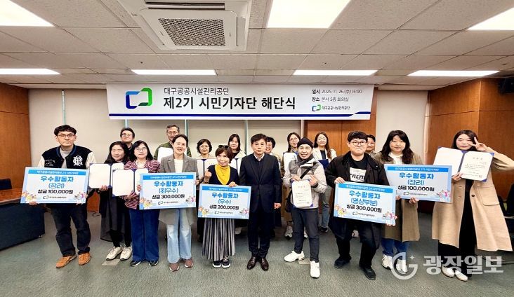 광장일보 주재영 기자 | 대구공공시설관리공단(이사장 문기봉)이 11월 26일 대명동 본사에서 제2기 시민기자단 해단식을 개최했다.