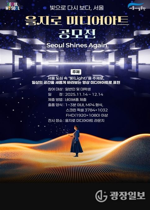 공모전은 일반부 및 대학생부로 나뉘어 진행되며, 12월 14일까지 공단 인스타그램에 게시된 네이버폼을 통해 참가 신청서 및 작품 파일을 제출하면 된다. 예선 통과작으로 선정된 모든 작품은 을지 미디어아트 라운지에 전시되는 기회가 제공되며, 최종 결과는 12월 17일 서울시설공단 공식 홈페이지 및 SNS 채널을 통해 발표할 예정이다.