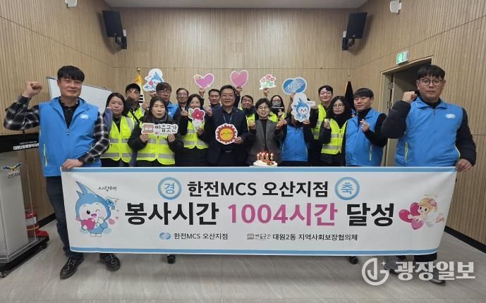 광장일보 나병석 기자 | 오산시 대원2동 지역사회보장협의체는 지난 4일 한전MCS 오산지점과 함께 봉사 누적 1004시간 달성 기념행사를 개최하고, 그동안 지역 곳곳에서 꾸준히 나눔을 실천해 온 직원들의 노고를 격려하는 뜻깊은 시간을 가졌다. 이번 성과는 단기간의 활동이 아닌 지속적인 민·관 협력과 꾸준한 연계로 이뤄낸 결실로, 지역사회에서도 큰 의미를 지닌다.