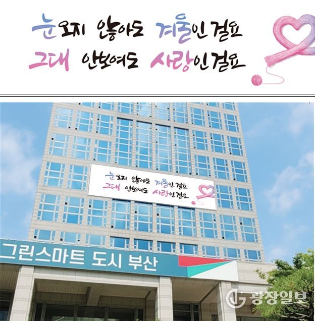 광장일보 주재영 기자 | 부산시는 '2025년 부산문화글판 겨울편'에 선정된 문안을 이달부터 내년 2월까지 약 3개월간 시청사 외벽에 게시한다고 밝혔다.