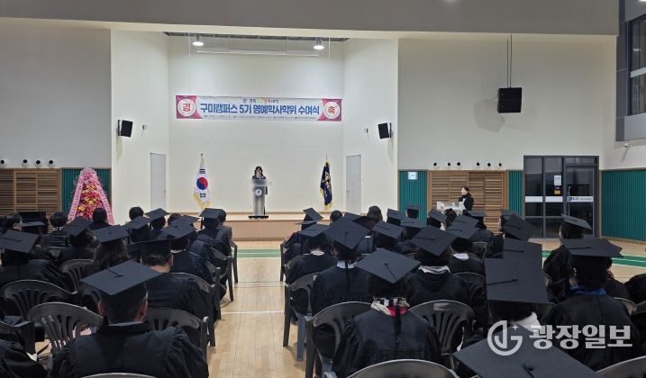 광장일보 주재영 기자 | 구미시는 지난 4일 국립금오공과대학교 신평캠퍼스 체육관에서 ‘2025년 제5기 경북도민행복대학 구미캠퍼스 학위 수여식’을 가졌다.