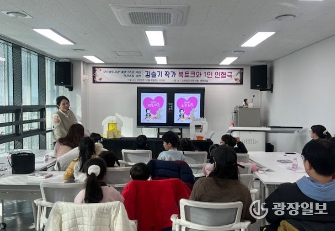 광장일보 주재영 기자 | 동두천시 도서문화사업소는 12월 6일 오르빛도서관에서 김슬기 작가를 초청해 ‘북토크와 1인 인형극’ 행사를 개최하고 성황리에 마무리했다. 이번 행사는 오르빛도서관 개관 1주년을 기념해 마련된 프로그램으로, 오전 10시부터 도서관 6층 세미나실에서 진행됐다.