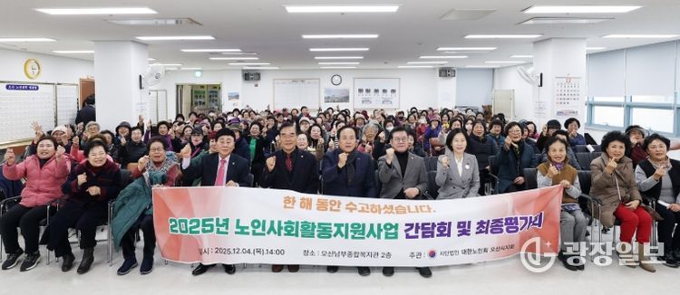 광장일보 나병석 기자 | 오산시는 지난 4일 대한노인회 경기 오산시지회와 함께 오산남부종합사회복지관 2층 강당에서 ‘2025년 노인일자리 및 사회활동지원사업(경로당도우미·경로당매니저)’ 참여자 180명을 대상으로 최종평가회를 개최했다고 밝혔다.