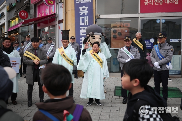 남양주시= 주재영 기자 | 남양주시(시장 주광덕)는 10일 다산한강초등학교 앞 사거리에서 정약용 캐릭터와 경찰 캐릭터(포돌이·포순이)가 참여한 민·관·경·학 합동 ‘등굣길 아동 안전 캠페인’을 진행했다.