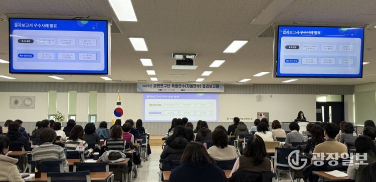 광장일보 주재영 기자 | 인천광역시교육청교육연수원은 12일 ‘2025 교원연구년 특별연수 결과보고회’를 열고 1년간의 연구 성과와 우수사례를 공유하는 자리를 마련했다.