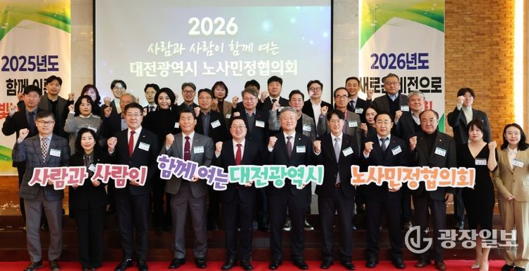 이어 참석자 전원은 공정한 노동시장 질서 확립, 지속가능한 안전 일터 조성, 일자리 창출 및 지역 협력 강화 등을 담은 「2026년 대전형 상생협력 비전-사람과 사람이 함께 여는 대전광역시 노사민정협의회」를 공동 선언했다.