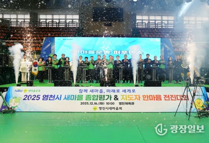 (사)영천시새마을회(회장 한세현)는 16일 영천체육관에서 한 해 동안 추진한 새마을운동 성과를 돌아보고, 새마을지도자들의 노고를 격려하기 위한 ‘2025년 영천시 새마을운동 종합평가대회 및 지도자 한마음 전진대회’를 개최했다.