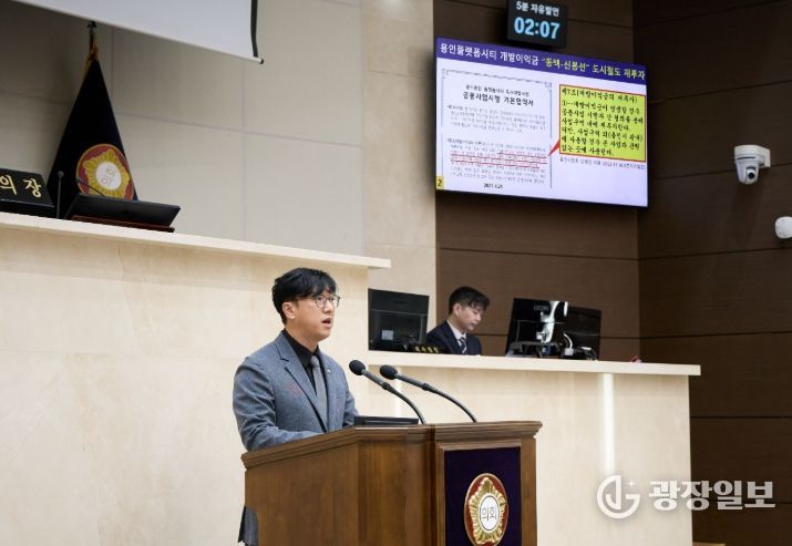 광장일보 주재영 기자 | 용인특례시의회 김병민 의원(구성동,마북동,동백1동,동백2동/더불어민주당)은 16일 열린 제298회 임시회 제1차 본회의에서 5분 자유발언을 통해 ‘제2차 경기도 도시철도망 구축계획’에 반영된 동백–신봉선 철도망의 원활한 추진을 위한 정책적 대응과 선제적 준비를 강력히 촉구했다.