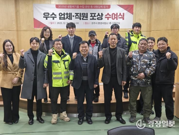 광장일보 이현나 기자 | 원주시는 12월 16일 '2025년 생활폐기물 수집ㆍ운반 대행업체 평가결과'에 따른 우수등급 업체 및 소속 직원을 대상으로 원주시장 상장 및 표창장을 수여한다.