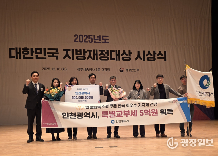 인천시= 주재영 기자 | 인천광역시(시장 유정복)가 행정안전부 주관 ‘민생회복 소비쿠폰’ 우수 지자체 평가에서 최우수 지자체로 선정됐다. 전국 243개 지방자치단체를 대상으로 한 이번 평가는 소비쿠폰 지급 실적, 사용처 확대, 신청·지급 편의성, 홍보 및 우수사례 등을 종합적으로 심사해 이뤄졌다.