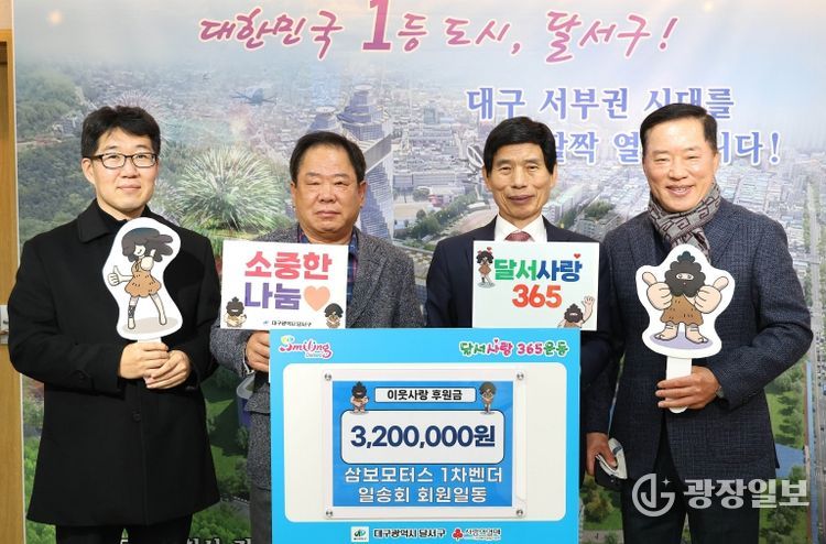 광장일보 주재영 기자 | 대구 달서구는 삼보모터스 1차벤더 일송회(회장 권원기) 회원들로부터 관내 취약계층 지원을 위한 이웃사랑 후원금 320만 원을 기탁받았다고 18일 밝혔다.