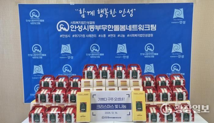 광장일보 주재영 기자 | 안성시동부무한돌봄네트워크팀은 지난 16일 크리스마스를 기다리며 관내 사회복지시설 7곳과 소외계층 50가정에 '크리스마스 빛 나눔'행사를 진행했다고 밝혔다.