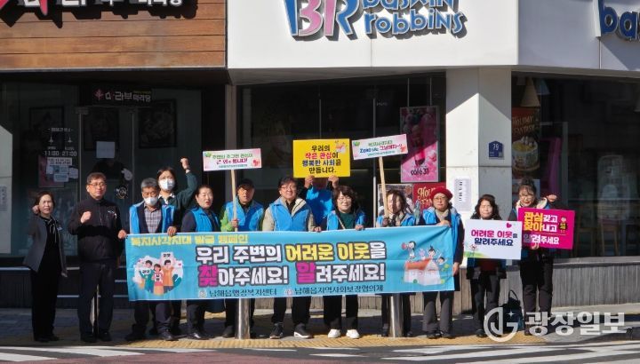 광장일보 주재영 기자 | 남해읍 지역사회보장협의체(공동위원장: 이창융, 박근배)는 지난 18일 남해읍행정복지센터 회의실에서 2025년 12월 정기회의를 개최한 후 읍 사거리에서 복지사각지대 발굴 캠페인을 개최했다.
