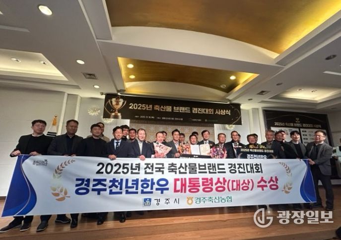 광장일보 주재영 기자 | 경주지역 대표 한우 브랜드인 ‘경주천년한우’가 농림축산식품부가 주최하고 농협경제지주가 주관한 2025년 축산물 브랜드 경진대회에서 최고의 영예인 ‘대통령상(대상)’을 수상했다.