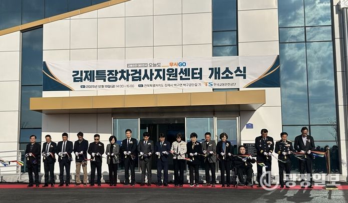 19일 시에 따르면 한국교통안전공단이 김희옥 부시장과 이원택 국회의원, 김제시의회 의원, 국토교통부 배소명 자동차운영보험과장, 박승준 김제경찰서장, 이종옥 김제소방서장, 오양섭 자동차융합기술원장, 특장기업인 및 지역주민 등 300여 명이 참석한 가운데 백구 특장차제2단지에 건립된 김제특장차검사지원센터 개소식을 개최했다.
