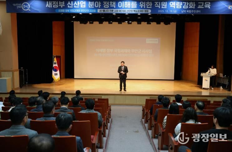 광장일보 주재영 기자 | 무안군은 지난 19일 남악 복합주민센터 대강당에서 이재명 정부가 국가 신성장 동력으로 육성하고 있는 에너지, AI 등 신산업 분야에 대한 정부 국정과제와 최근 정책 동향에 대한 이해도를 높이기 위해 무안군 공직자들을 대상으로 역량 강화 교육을 실시했다.