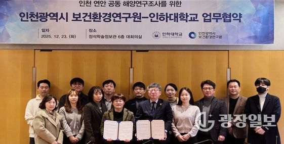 광장일보 주재영 기자 | 인천광역시 보건환경연구원은 인하대학교와 12월 23일 ‘인천해역 해양환경 공동조사 및 연구협력 업무협약(MOU)’을 체결했다고 밝혔다.