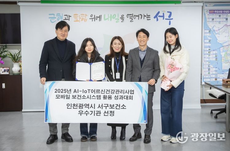 광장일보 주재영 기자 | 인천 서구보건소는 한국사회보장정보원이 주최한 ‘2025년 모바일 보건소 활용 성과대회’에서 AI-IoT기반 어르신 건강관리사업 운영 성과를 인정받아 우수기관으로 선정됐다고 밝혔다.