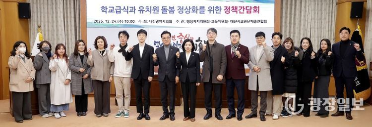 광장일보 이현나 기자 | 대전시의회는 24일 시의회 소통실에서 이금선 의원(국민의힘, 유성구4)과 이중호 의원(국민의힘, 서구5) 주재로 ‘학교급식과 유치원 돌봄 정상화를 위한 정책간담회'를 개최했다.