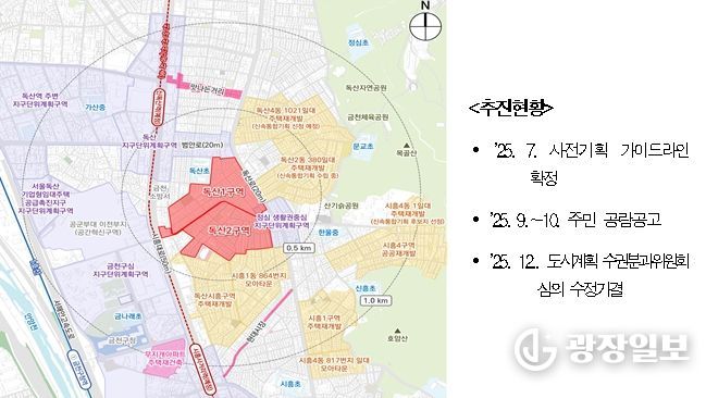 광장일보 주리아 기자 | 서울시는 2025년 12월 24일 '제14차 도시계획위원회 신속통합기획 정비사업 등 수권분과위원회'를 개최하여 ‘독산동 1036일대(독산1구역)’과 ‘독산동 1072 일대(독산2구역)’ 주택정비형 재개발사업 정비구역 지정 및 정비계획 결정(안)을 '수정가결' 했다고 밝혔다.