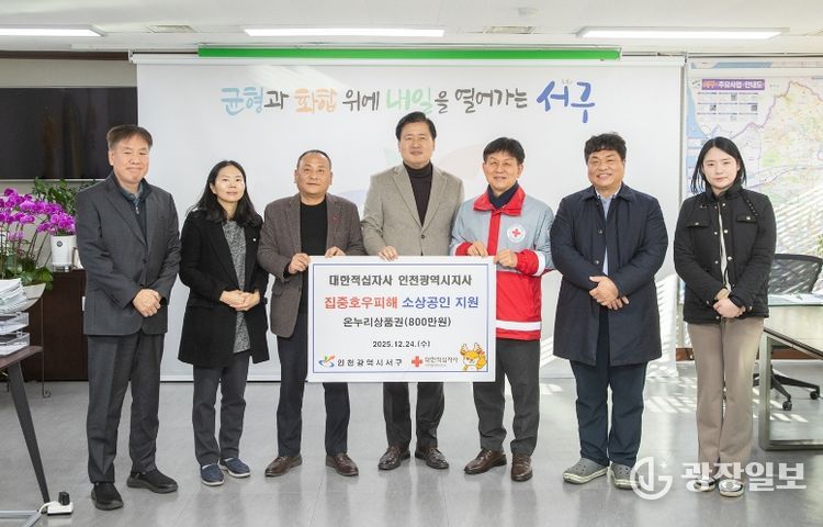 광장일보 주재영 기자 | 인천 서구는 지난 24일 대한적십자사 인천광역시지사(회장 조의영)로부터 온누리상품권(800만 원 상당)을 전달받았다.